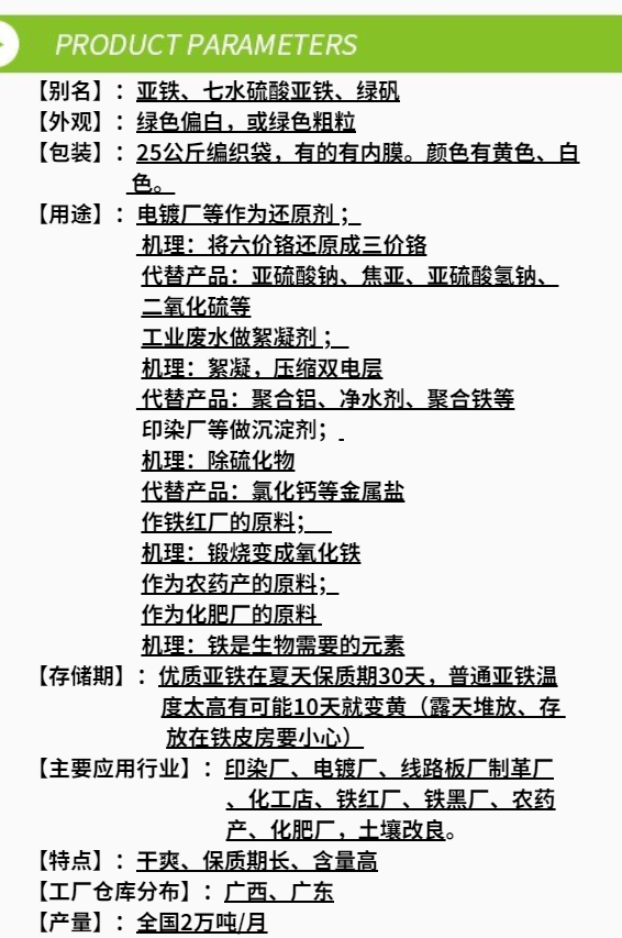 烘干硫酸亞鐵產(chǎn)品特性